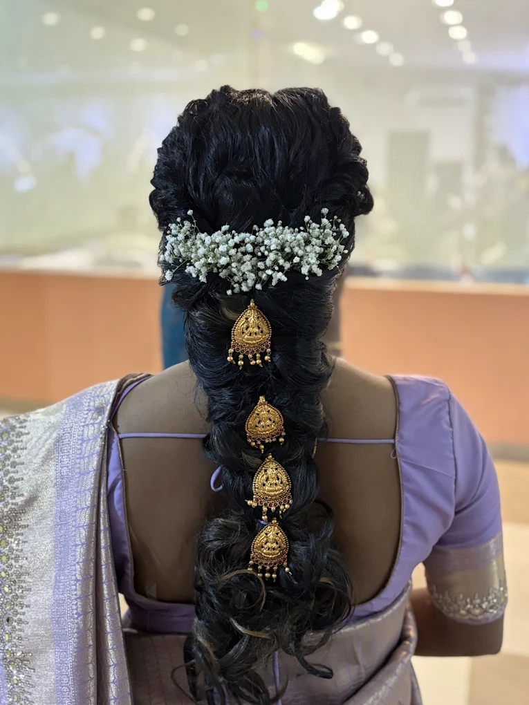In hair care, Sakshi offers professional hair styling to complement bridal and party makeup looks.